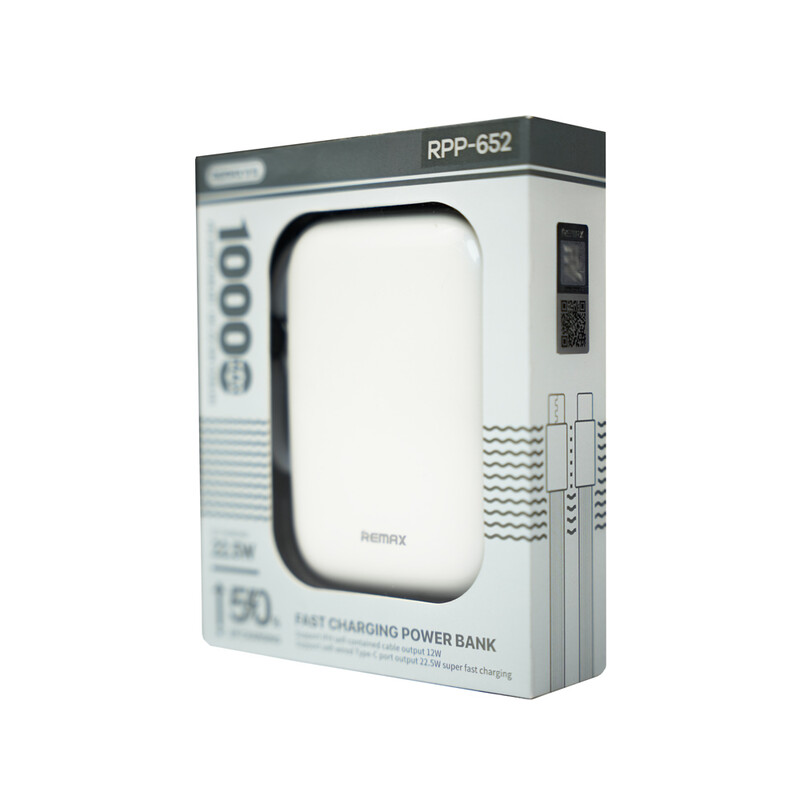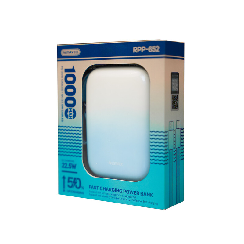 پاوربانک 10000 mAh ریمکس Remax RPP‑652 | شارژ سریع Fast Charging 22.5W با کابل Type‑C و Lightning